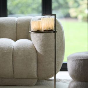 Ten stolik pomocniczy to połączenie funkcjonalności i luksusowego wyglądu. Blat wykonany z kamienia naturalnego w połączeniu z elegancką metalową podstawą tworzy nowoczesną, a zarazem ponadczasową formę.
