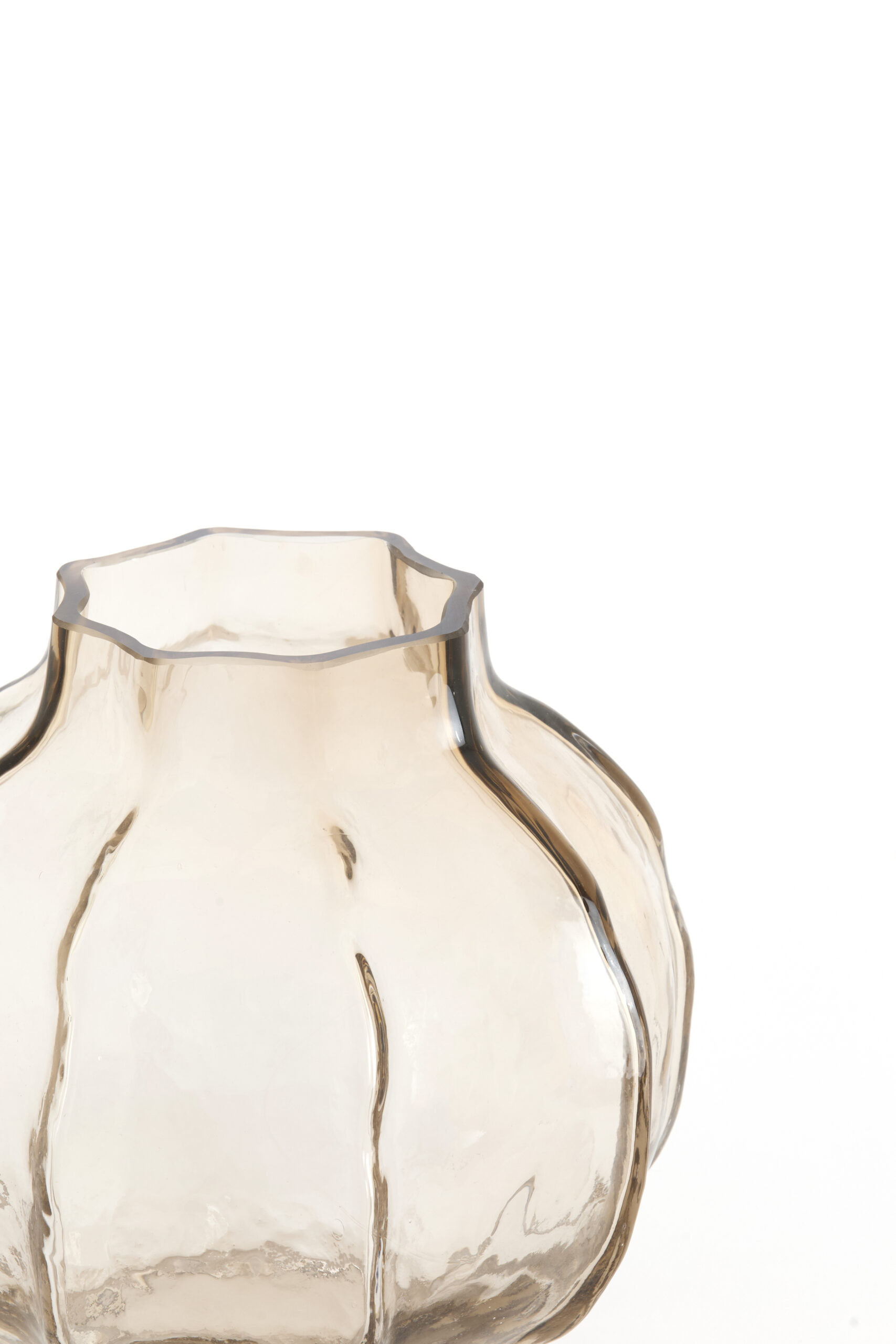 Szklany wazon o delikatnie falowanej formie to idealny wybór dla miłośników prostoty i elegancji. Transparentna struktura pięknie eksponuje kwiaty i dodaje wnętrzu lekkości.