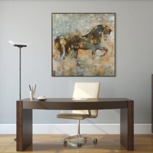 Abstrakcyjny obraz w odcieniach różu ze złotymi akcentami. Ciepła, błyszcząca kompozycja z elementami orientu. Nowoczesna sztuka akrylowa z złotą folią, tworząca efekt refleksów i eleganckiego blasku. Idealna do każdego wnętrza!