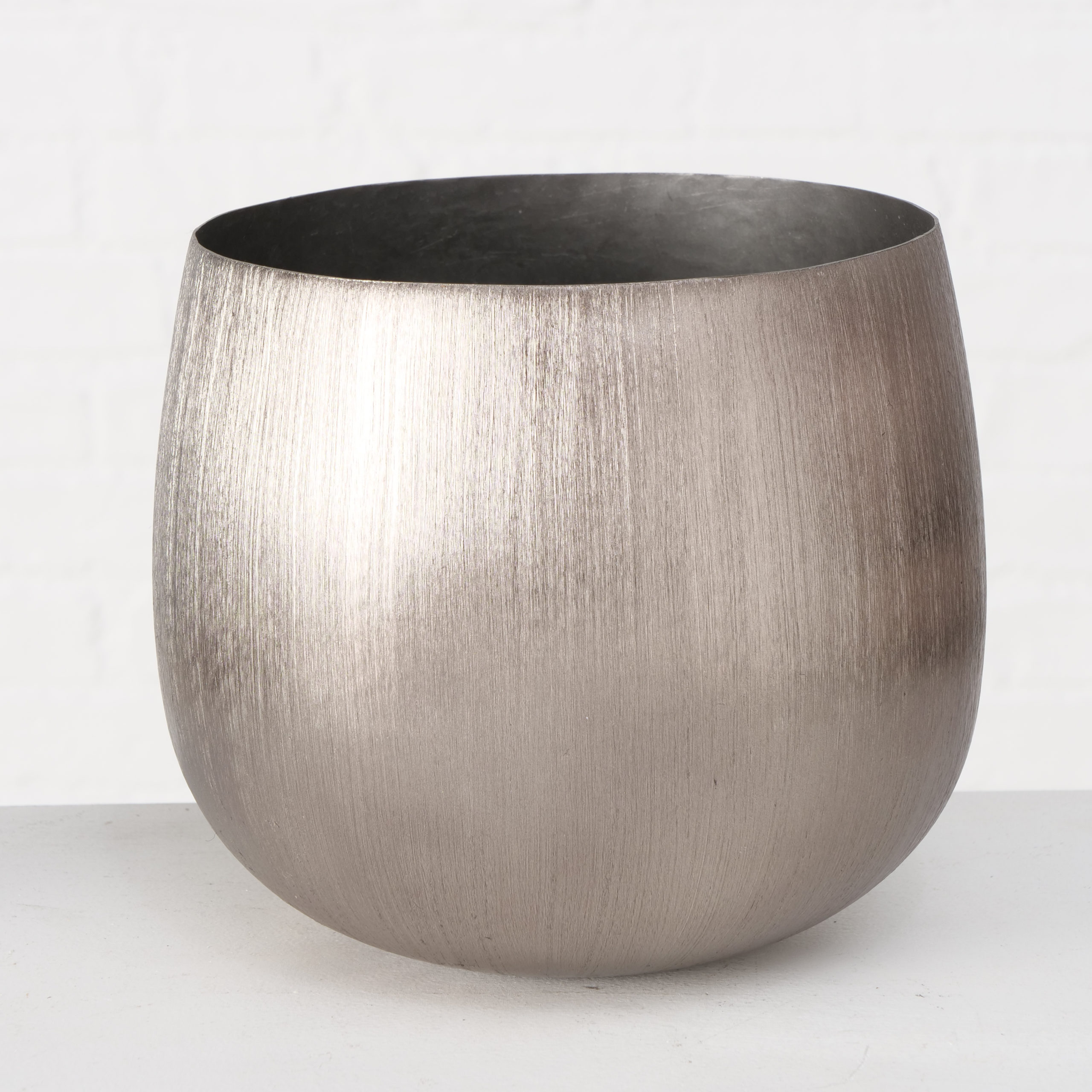 Nowoczesna, loftowa donica wykonana z przecieranego metalu w odcieniu surowego, antycznego srebra. Donica Golia będzie idealnym dopełnieniem wnętrza urządzonego w surowym, minimalistycznym stylu.