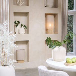 PONADCZASOWY DESIGN: Forma nawiązująca do klasycznych kolumn, ale podana w surowym, nowoczesnym wydaniu, które pasuje do stylu Japandi, Boho oraz Loft.
