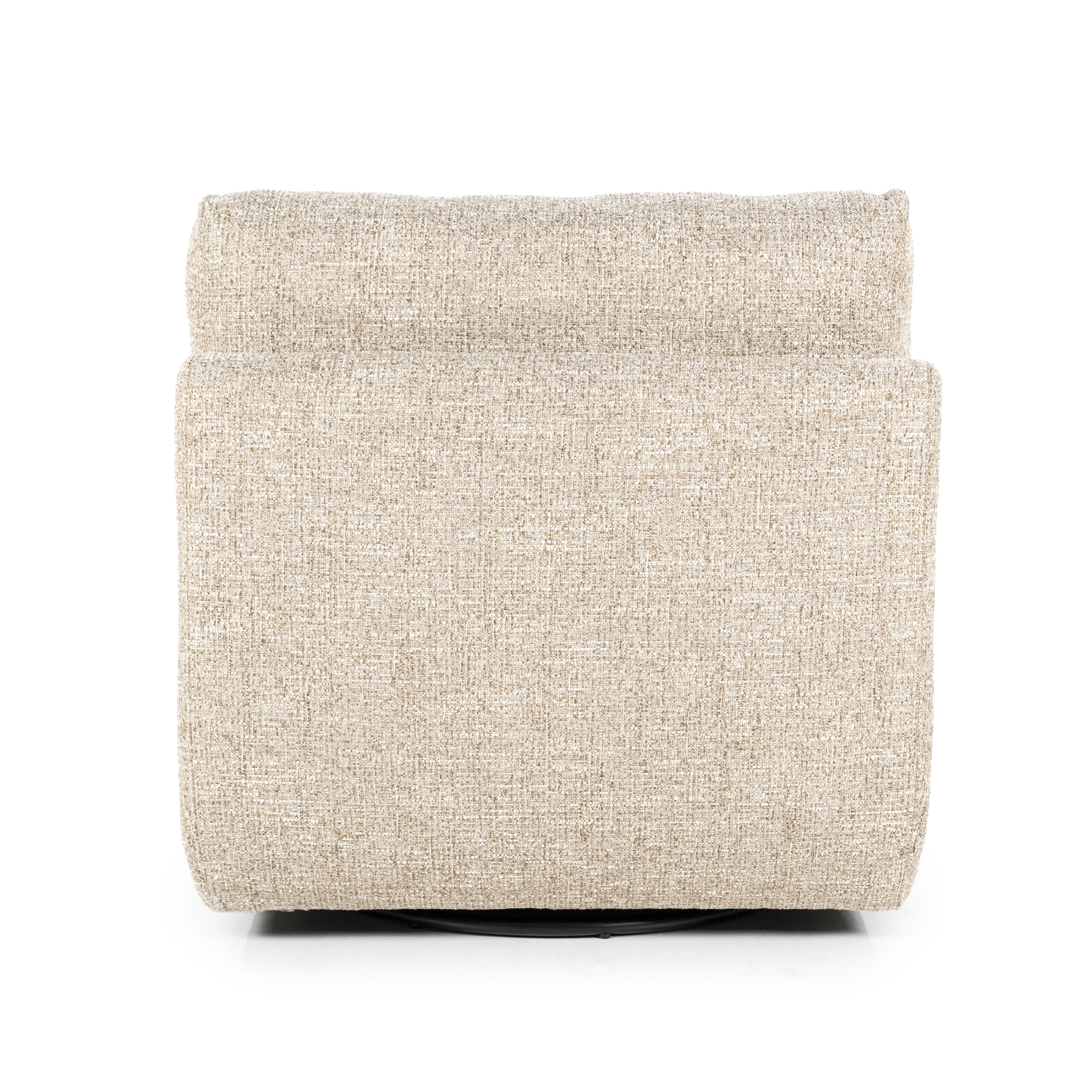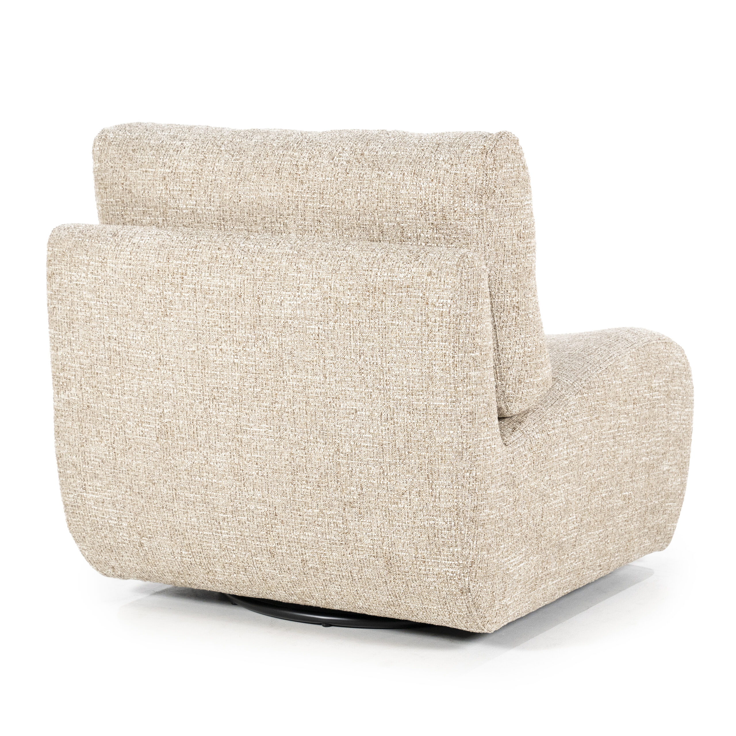 Ten obrotowy fotel o eleganckim, a zarazem wygodnym wyglądzie jest w całości obity tkaniną Donna w jasnym, szarobrązowym wykończeniu.