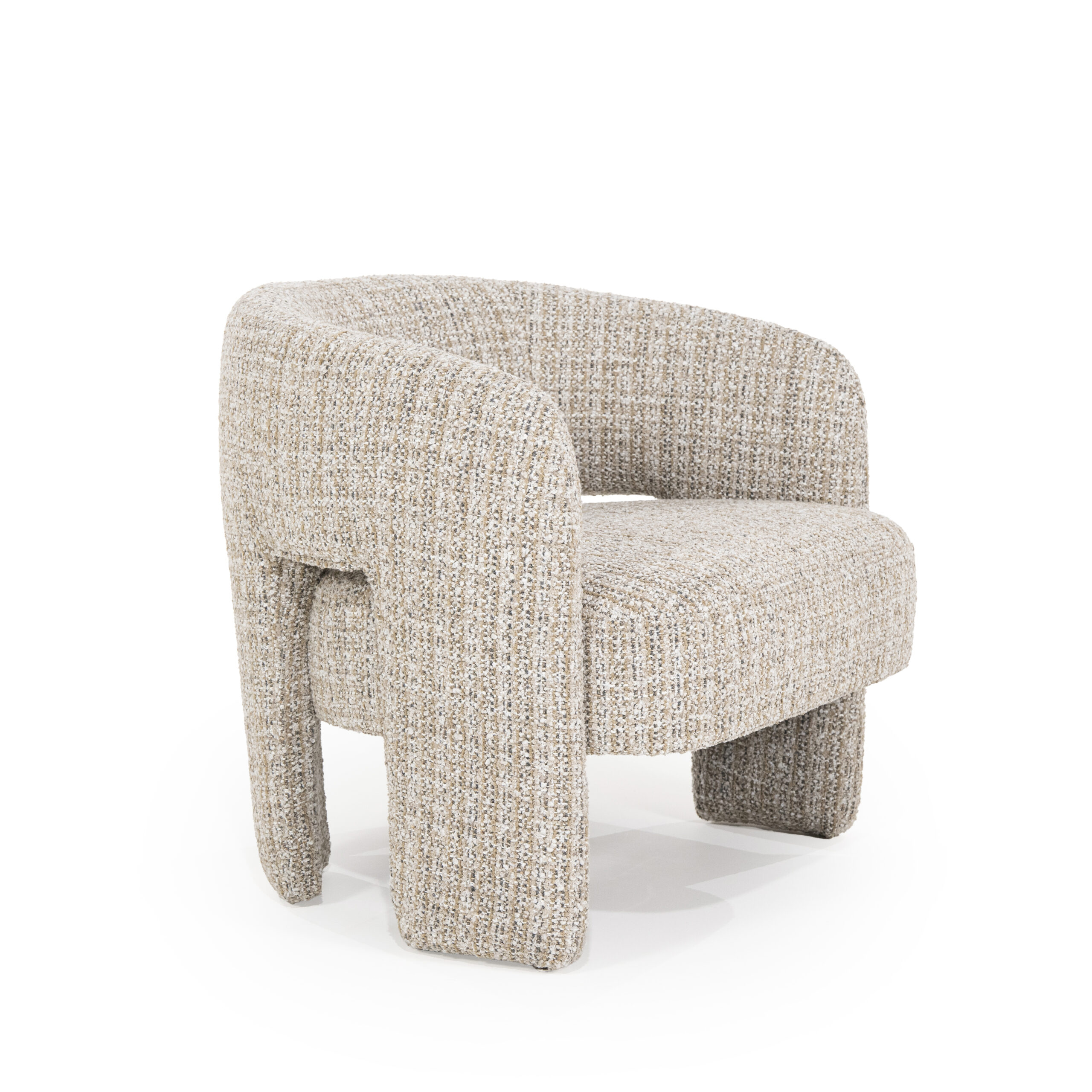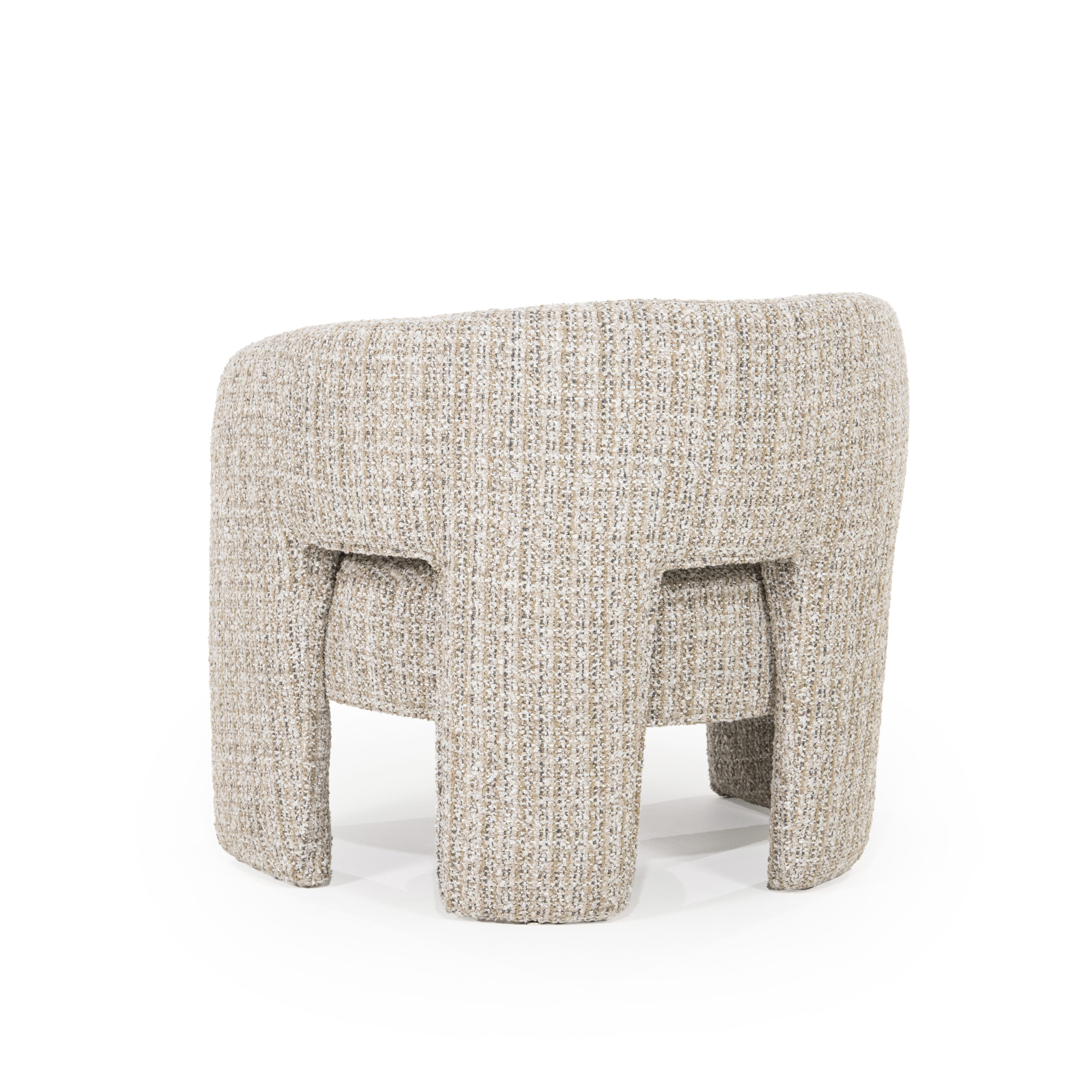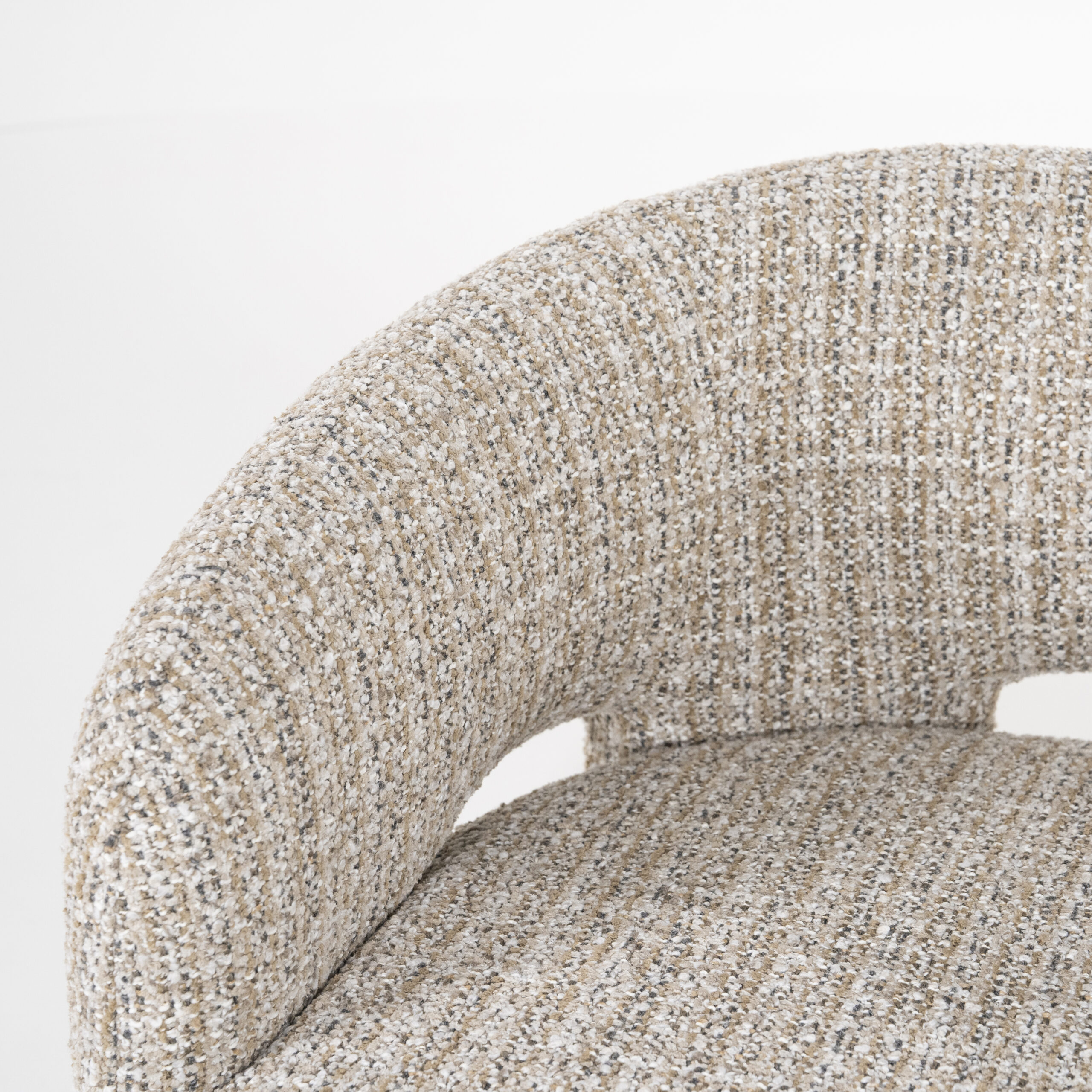 Ten modny fotel pochodzi z nowej kolekcji holenderskiej marki. Jest w całości tapicerowany tkaniną „Asti” w jasnym odcieniu taupe.