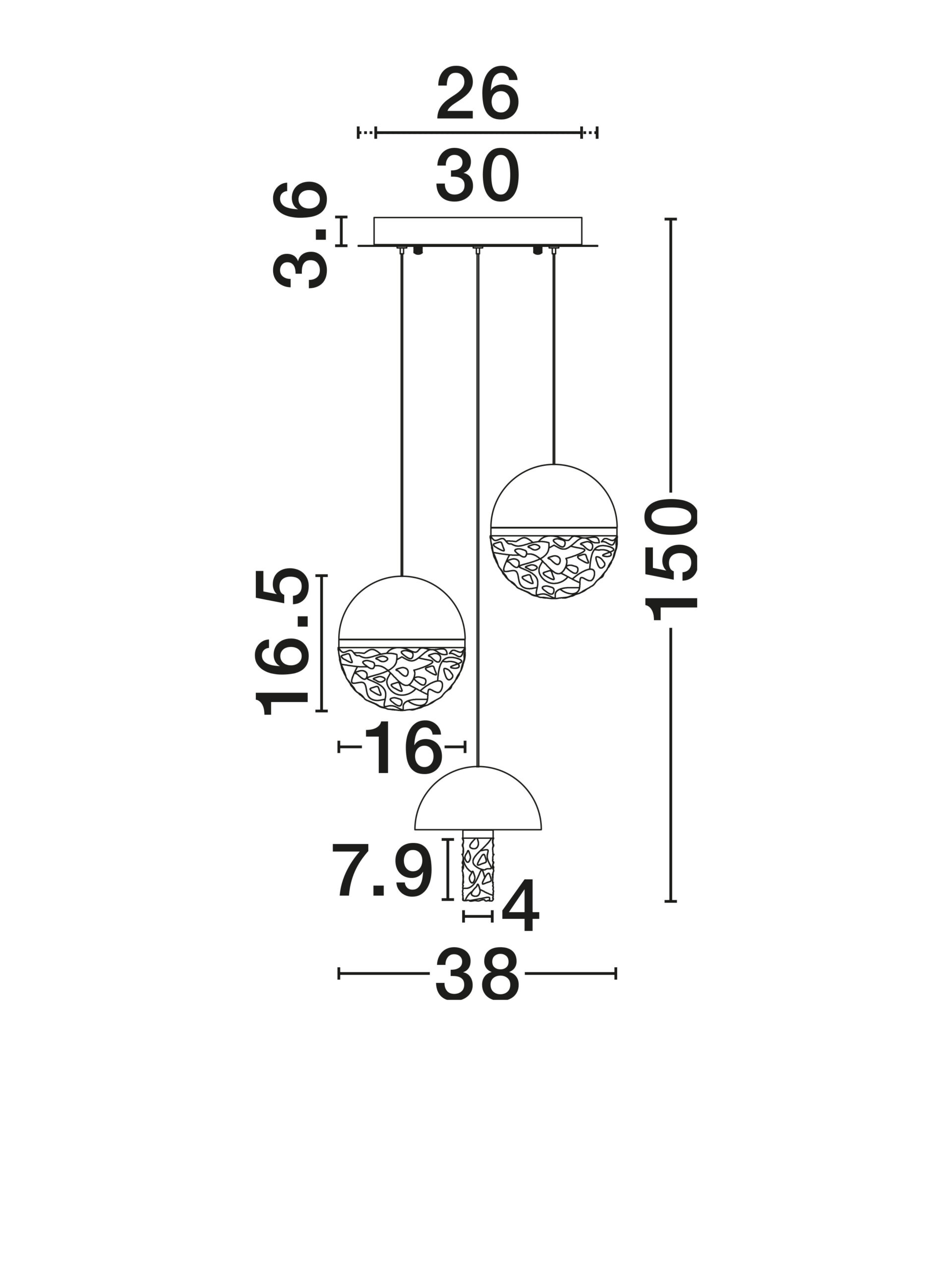 Kompozycja trzech lamp o różnych rozmiarach tworzy niezwykle efektowny i dynamiczny układ. Dzięki temu lampa prezentuje się lekko, nowocześnie i bardzo elegancko – idealnie sprawdzi się nad stołem, wyspą kuchenną, w salonie lub przy schodach.