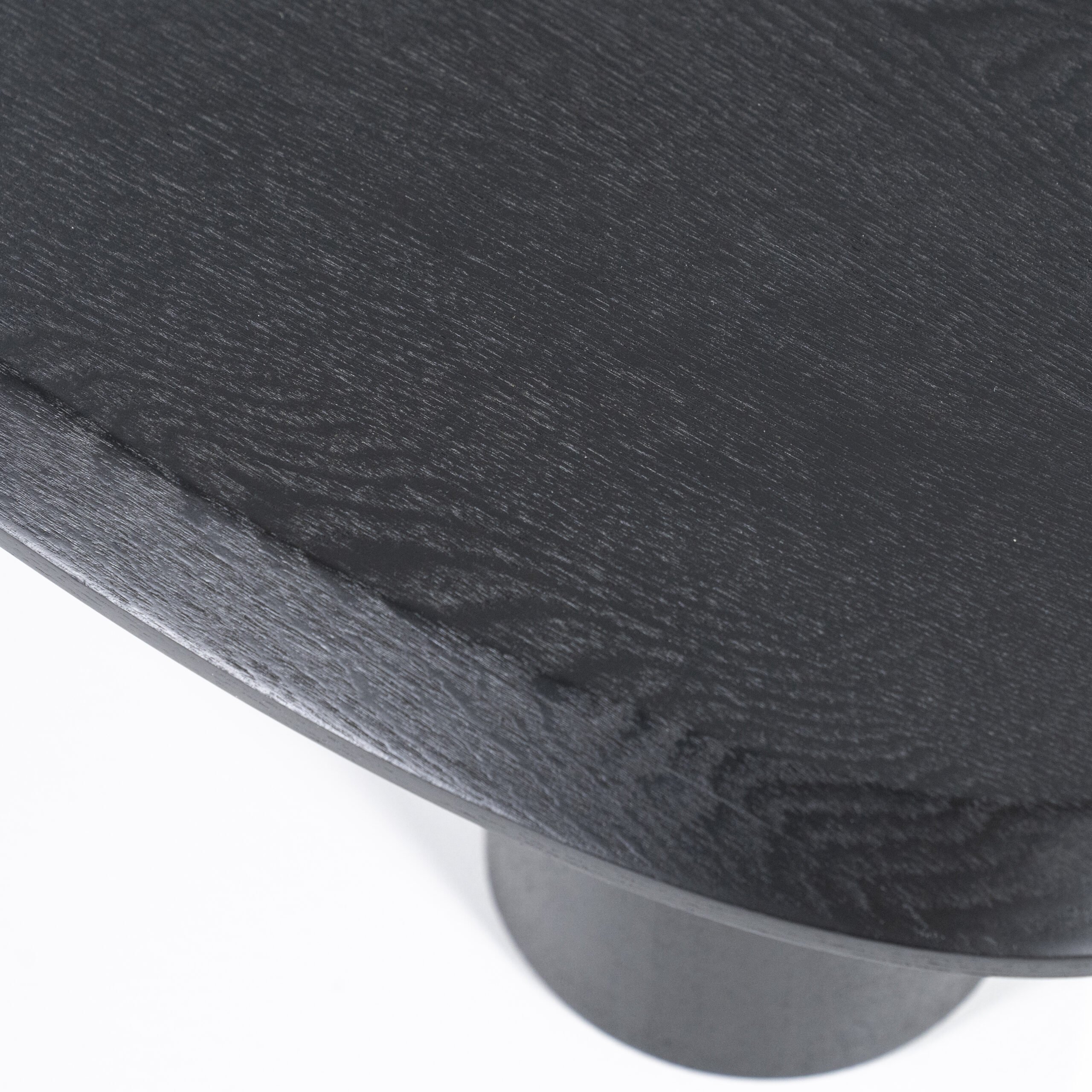 Stolik kawowy to nowy, przyciągający wzrok element z NOWEJ KOLEKCJI. Organiczny blat wykonany jest z dębowego forniru w czarnym wykończeniu. Trzy solidne, okrągłe nogi w połączeniu z unikalnym kształtem blatu nadają stolikowi zabawny wygląd. Duży blat oferuje również dużo miejsca na przekąski i napoje podczas przytulnego wieczoru.